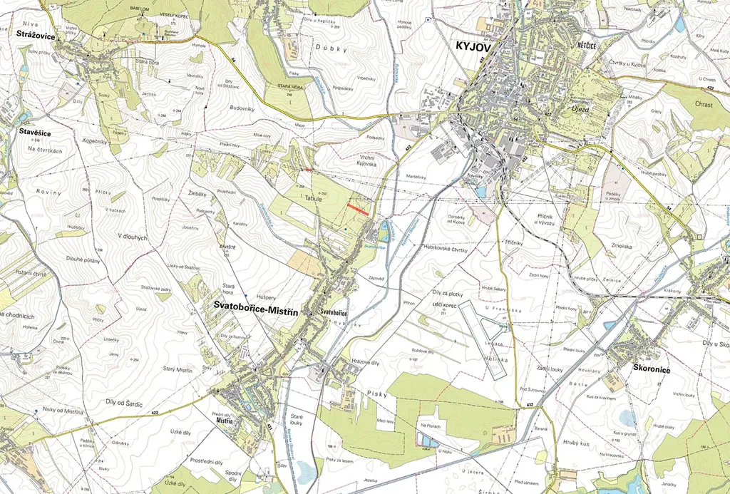 - 2 pozemky tvoří jeden celek v těsné blízkosti zástavby obce Svatobořice (směr Kyjov)