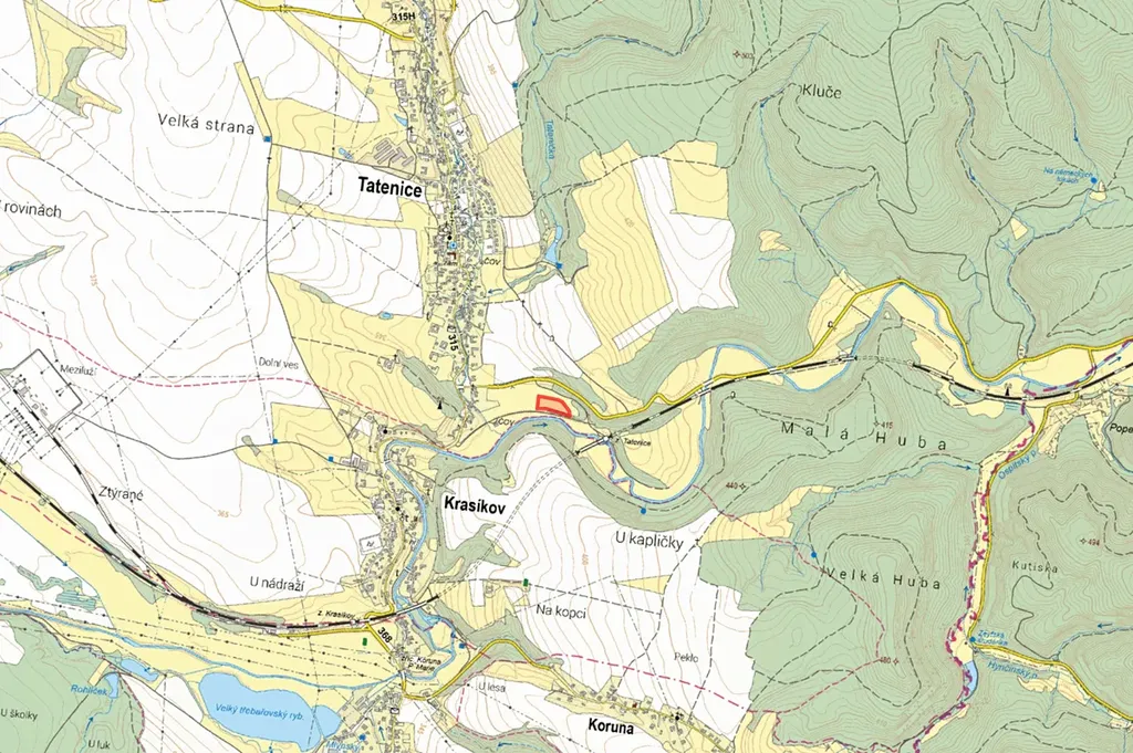 Pozemek se nachází v přirozeném zákoutí na rozhraní obcí Tatenice a Krasíkov, v rovinaté krajině u toku řeky Moravská Sázava.
