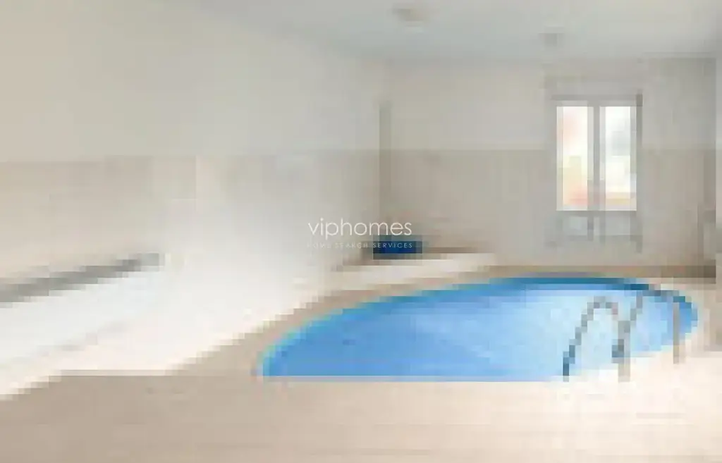 Vyhřívaný bazén s automatickou odvlhčovací jednotkou, který je přístupný z obytné části i z terasy.