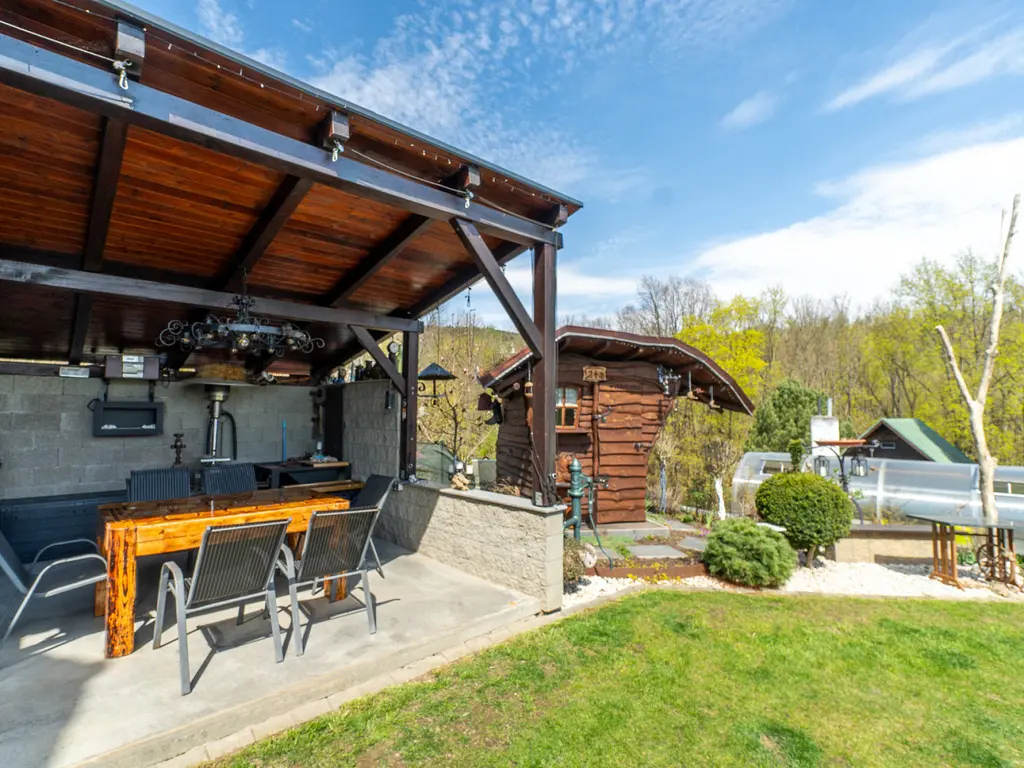 Zahrada je skutečnou oázou klidu – najdete zde ovocné stromy (švestka, jabloň, hrušeň) i keře (maliny, borůvky, ostružiny), skleník, udírnu i dřevník. Praktický je také zahradní domek s přívodem elektřiny a vody.