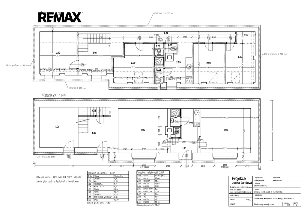 Okna: Plastová s izolačním trojsklem + střešní okna Velux.
