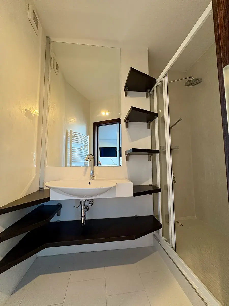 V bytě je prostorný obývací pokoj s plně vybavenou kuchyňskou linkou, obývací, jídelní a pracovní zónou. Z obýváku je vchod do ložnice se vstupem na balkon a vestavnými skříněmi přes celou stěnu. Dále je odtud přístup do koupelny se sprchovým koutem a malé praktické komory. V bytě je také předsíň s vestavnými skříněmi a toaleta s místem na pračku. Na stěnách bytu je marocký štuk, na podlahách lamino s dekorem dřeva. Okna jsou plastová v vnitřními i vnějšími žaluziemi. Byt má bezpečnostní vstupní dveře a zabezpečovací systém od Jablotronu. Internetové připojení je přes GB linku od T-Mobile. K bytu patří sklep 2x2 m v suterénu domu.