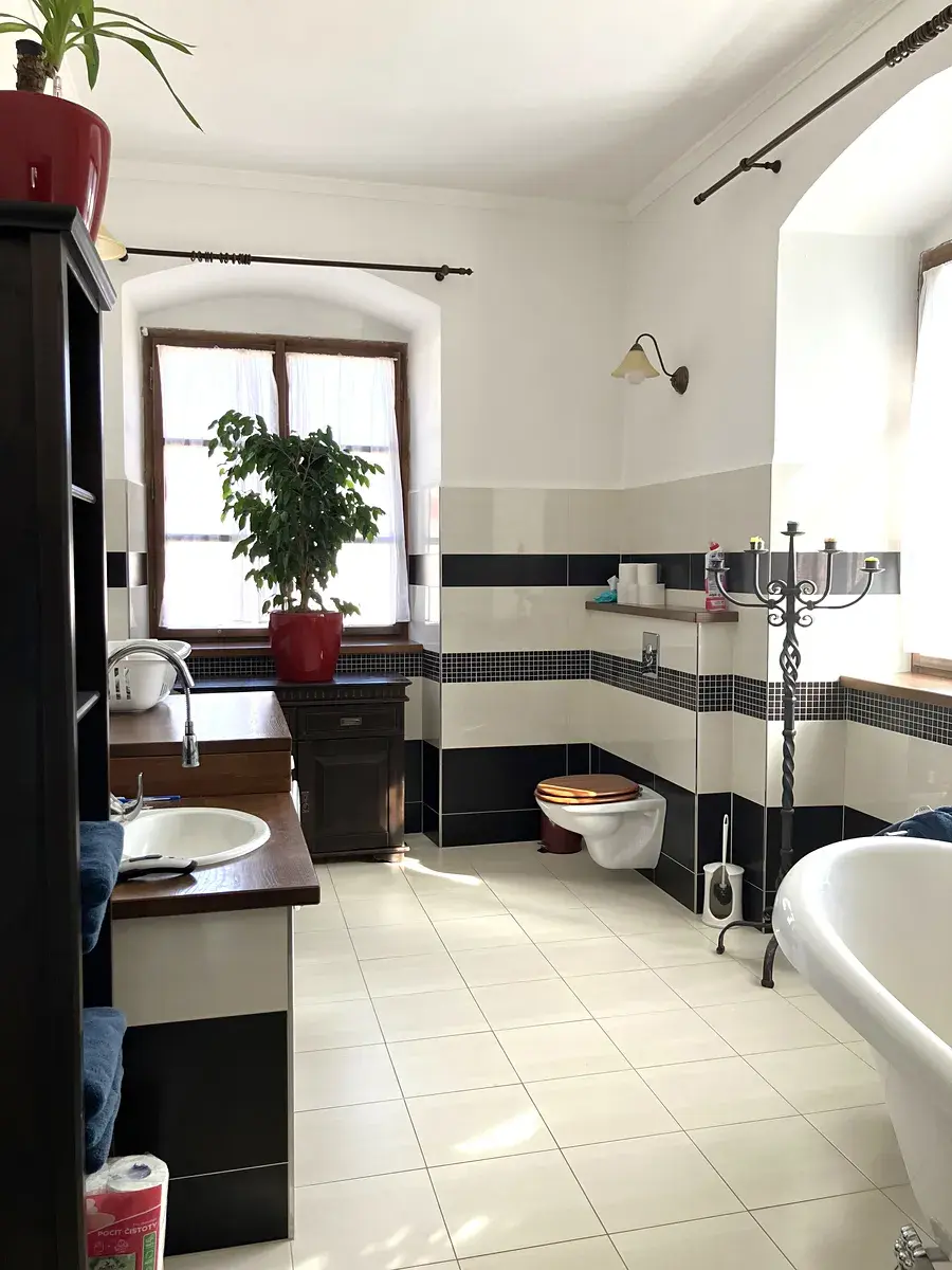 Obytný dům má v přízemí 3 velké pokoje, vstupní halu, kuchyni a WC. V 1. patře je 5 pokojů, jeden s přípravou na další kuchyni, koupelna a WC a v podkroví jeden velký pokoj s koupelnou a WC. Dům je tak možné rozdělit na 2-3 bytové jednotky. Vytápění je podlahové v kombinaci s radiátory a napojené na elektrokotel. Voda je z vlastní vrtané studny a nemovitost je napojena na čističku. Dům je ve velmi dobrém stavu k nastěhování.