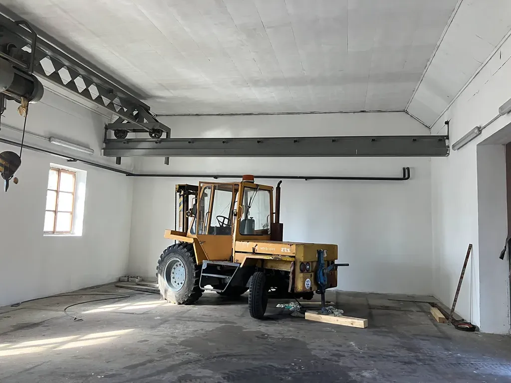 Dvorní trakt usedlosti tvoří celkem čtyři budovy rozdělené do nezávislých i propojených prostor. Hala A - první v budově nalevo od brány má výměru 141 m² (9,8x14.3), světlou výšku 6,3 m a vrata o šířce 6,3 a výšce 3,4 m. Hala B má plochu 107 m² (8,5x12,6) a výšku 3,1 m. C je rohový prostor se 2 podlažími o výměře 90 m² (10,7x8,3). Hala D má portálový jeřáb, plochu 111 m² (12,8x8,6), výšku 4,98 a vrata o š.4,47 a v. 3,25m. Hala E má dvě podlaží, v přízemí má prostor o ploše 128 m s vestavěným chladícím boxem napravo od vrat o ploše 12 m² a dvěma místnostmi nalevo (25 a 9 m²). V patře jsou 3 místnosti (62, 52 a 24 m²) a chodba se schodištěm. Nejblíže řece je samostatná budova s bytem ke kompletní rekonstrukci a oddělený prostor s vodní elektrárnou s Francisovou turbínou 1500 mm, průtokem 2,5 m3 a výkonem 50kW. Elektrárna je přímo na řece Nežárce, je plně funkční, má povolení k provozu a je napojená jak na síť, tak celý areál.