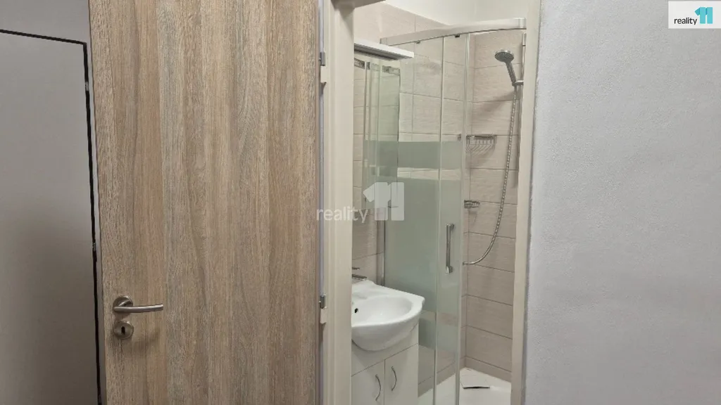 (sprchový kout a pračka), samotná toaleta a chodba. K bytu náleží také sklep.