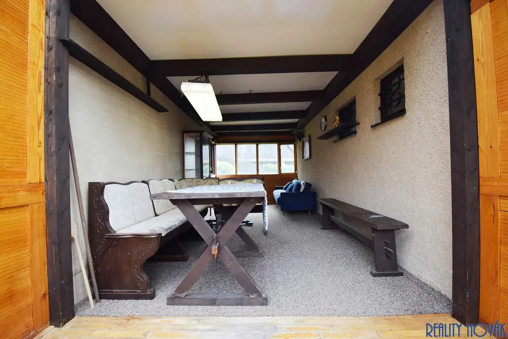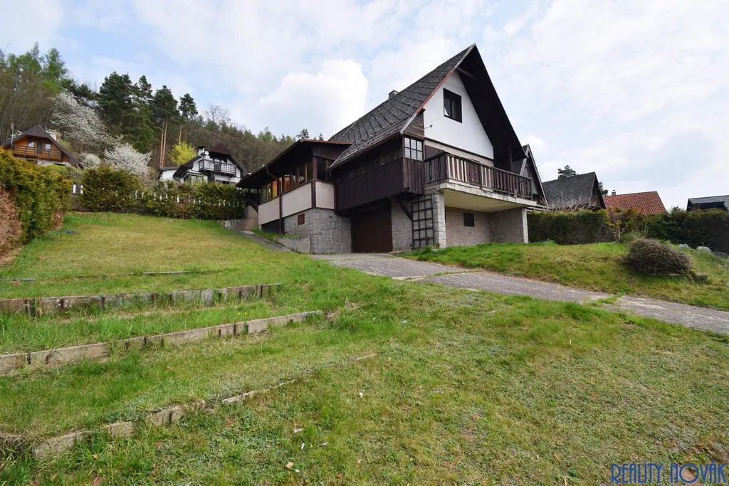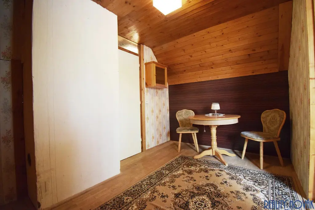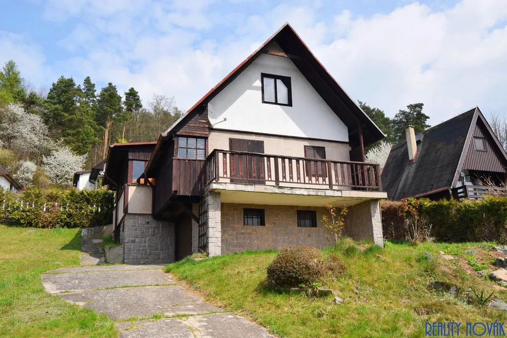 Nabízíme k prodeji velmi pěknou rekreační chatu umístěnou na kopci s výhledem do okolí, která se nachází v obci Stříbrná Skalice v okrese Praha-východ. Kromě hlavní chaty se v jihozápadním rohu pozemku nachází ještě druhá stavba, která má samostatné číslo evidenční. Hlavní chata s celkovou užitnou plochou 136 m² je postavena na vlastním pozemku o výměře 751 m², z toho zastavěná plocha chaty činí 79 m², další stavba má 22 m² a zahrada má výměru 650 m². Nemovitost má vlastní studnu a septik, na hranici pozemku v komunikaci se ale nachází také nově zbudovaný vodovod a kanalizace. Vytápění je řešeno krbem a elektrickými radiátory, ohřev vody zajišťuje elektrický bojler. Chata je postavená na zděném základu, je cca z jedné poloviny podsklepená a téměř celý sklep je využívaný jako prostorná garáž o velikosti 30 m², která má vjezdovou bránou na dálkové ovládání. Současná dispozice obytné části je 3+1. V přízemí se nachází obývací pokoj, kuchyně, koupelna, samostatné WC a také velká zastřešená veranda (zimní zahrada). Z obývací pokoje je vstup na terasu, která má velmi příjemných 12 m², je orientovaná na jihozápad a poskytuje otevřený výhled do širokého okolí. V podkroví se pak nacházejí další tři obytné pokoje, z nichž jeden je průchozí, ale v případě potřeby je možné v jeho části vybudovat např. druhou koupelnu. Tato nemovitost může skvěle sloužit k rekreačním účelům, ale po provedení příslušných stavebních úprav může být využívána i k trvalému bydlení. Pokud hledáte nemovitost s podobným potenciálem v rozumné dojezdové vzdálenosti od Prahy, určitě byste neměli tuto nabídku minout. Pro bližší informace a prohlídky kontaktujte makléře.