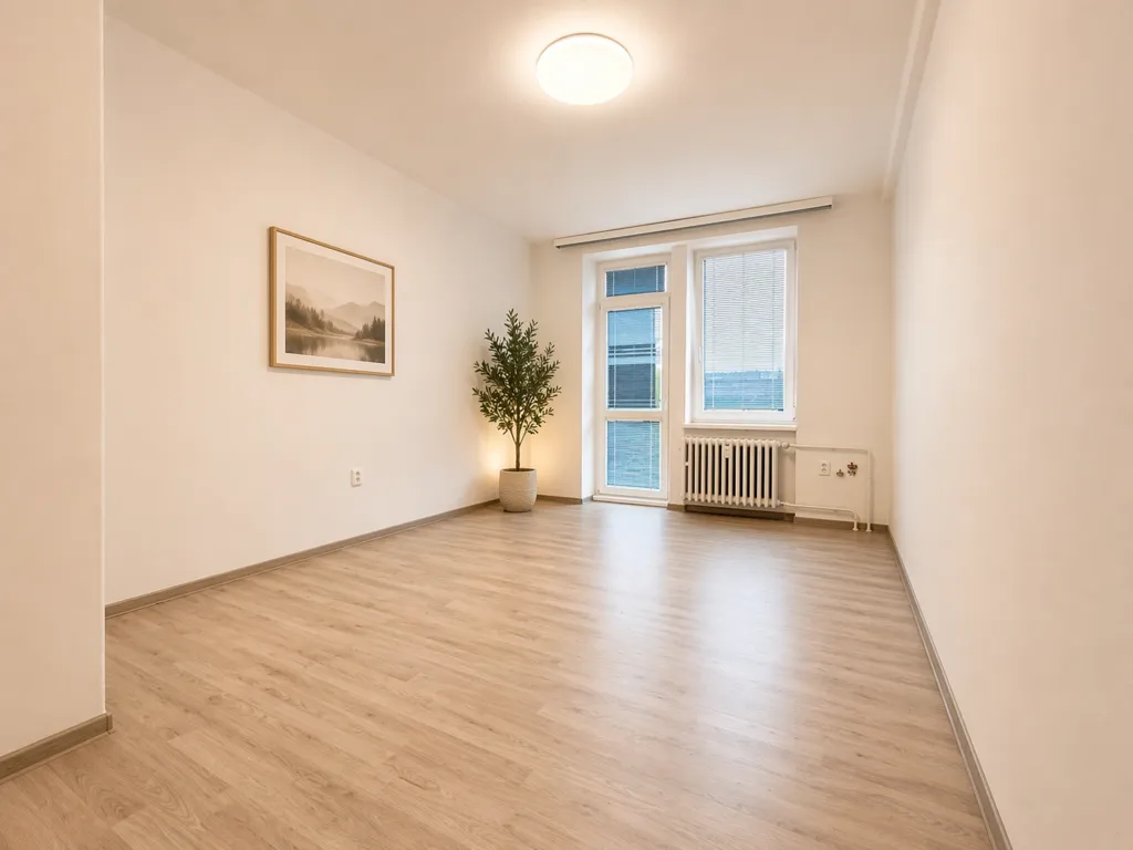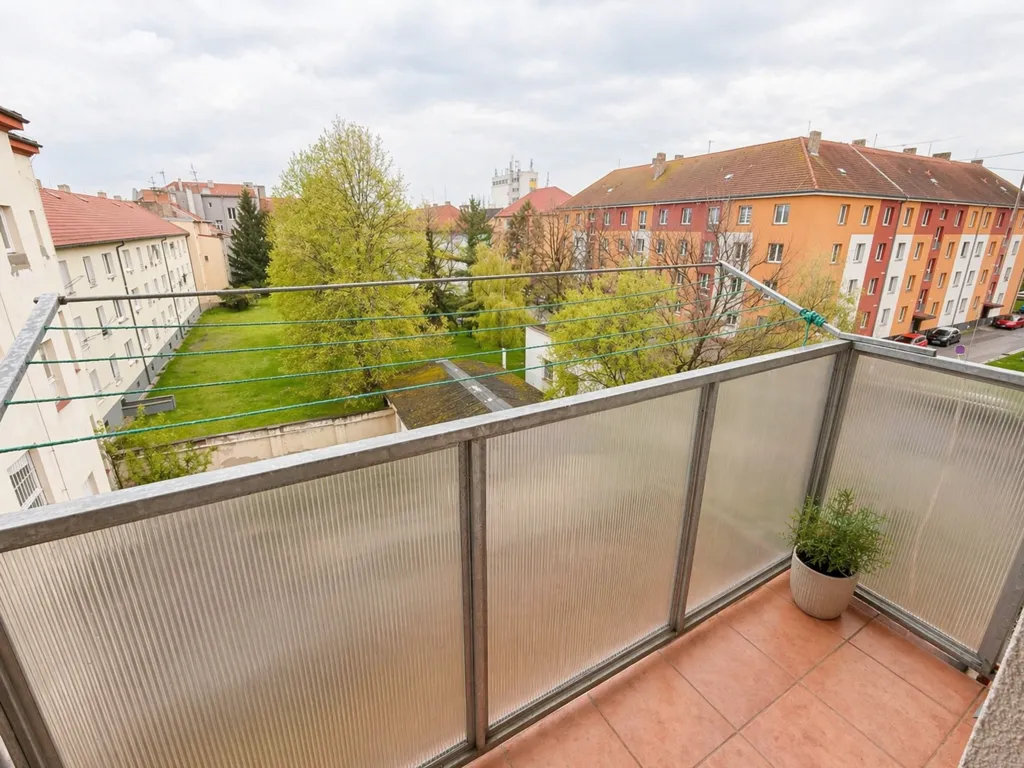 Velkým benefitem je balkon, který poskytuje příjemný prostor k odpočinku. Interiér působí čistě a vzdušně díky světlým podlahám a dostatku denního světla.