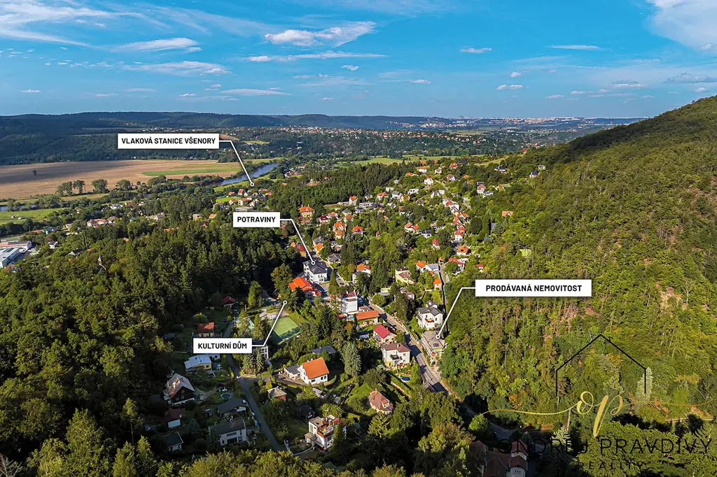 V okolí se nachází krásné lesy a přírodní rezervace, které nabízejí možnosti pro procházky, cykloturistiku či různé sportovní aktivity. V blízkosti nemovitosti je zastávka autobusu a ani k vlakovému nádraží to není daleko. Vlakem se dostanete za 20 min na Smíchovské nádraží či do 30 min na Hlavní nádraží. Autem jste za pouhé 3 minuty na Strakonické dálnici D4 a odtud za chvíli na dálničním obchvatu či na kraji Prahy.