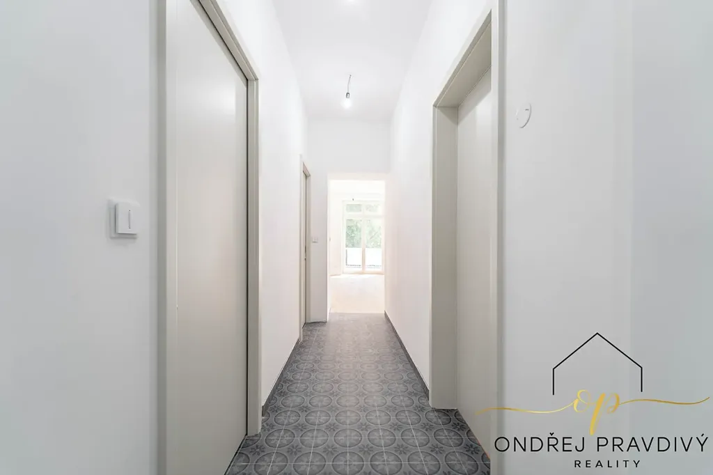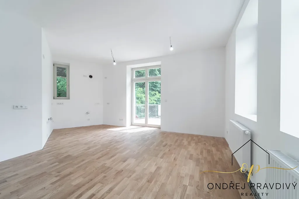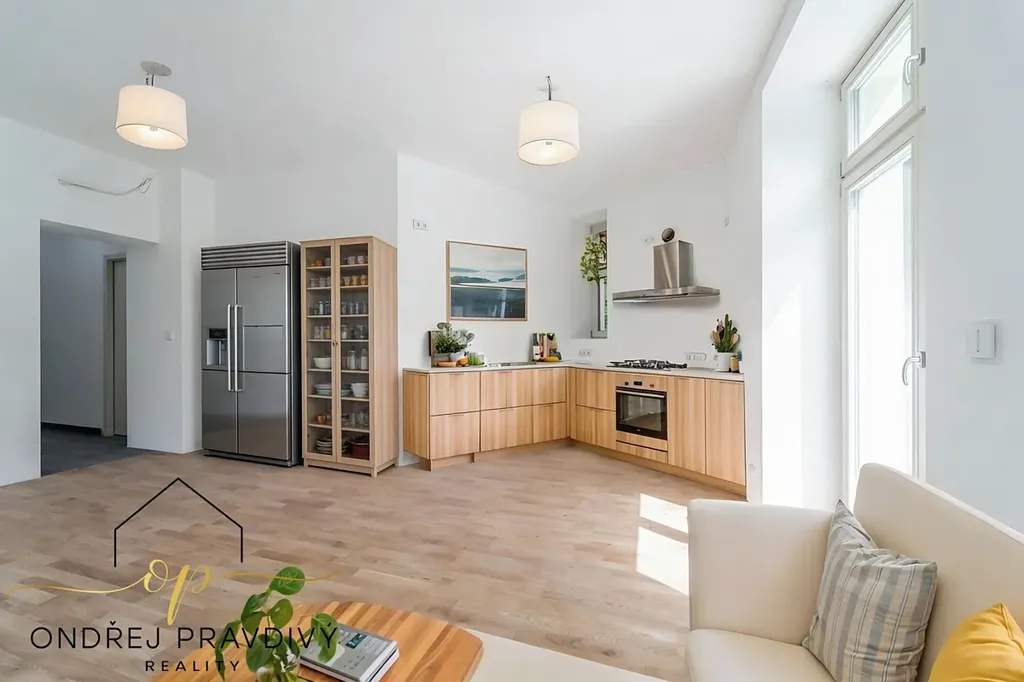 Byt se nachází ve 2. nadzemním podlaží a po kompletní přestavbě domu se může pyšnit nadstandardní kvalitou provedení a použitých materiálů. Provedení zahrnuje dřevěné plovoucí podlahy, dřevěná euro okna s trojskly, designové dlažby a nadčasové obklady. Značková sanita firem Laufen a Hansgrohe. Dále jsou datové rozvody, klimatizace, příprava na zabezpečení a elektromobilitu. Díky zateplení celého domu i vlastnímu kondenzačnímu kotli pro vytápění a ohřev vody budou provozní náklady skutečně příznivé. Orientace na jiho-západ zajišťuje dostatek slunečního světla a vysoké stropy zase pocit vzdušnosti. Příslušenství bytu zahrnuje terasu přístupnou z obývacího pokoje, vlastní parkovací stání a prostorný sklep 11 m² na jakékoliv sportovní či sezónní vybavení.
