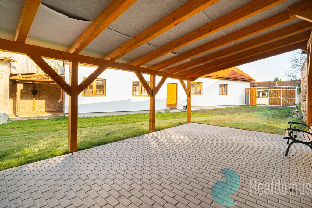 Zahrada má rozlohu 510m2 a nabízí zastřešenou pergolu, která nemusí být pouze krytým stáním na automobil, ale spíše jako rekreační prostor na posezení s rodinou a přáteli. Na dvoře je kopaná studna, která i v obdobích sucha má dostatek vody.