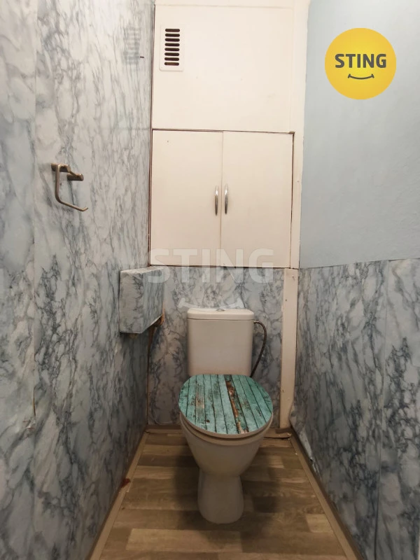 Dispozice bytu nabízí tři samostatné pokoje a kuchyň s potenciálem propojení s obývacím pokojem, čímž lze vytvořit moderní otevřený prostor. Koupelna je rovněž v původním stavu, toaleta je oddělená. Bytové jádro je původní, v kombinaci panelu a umakartu.