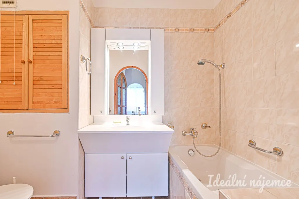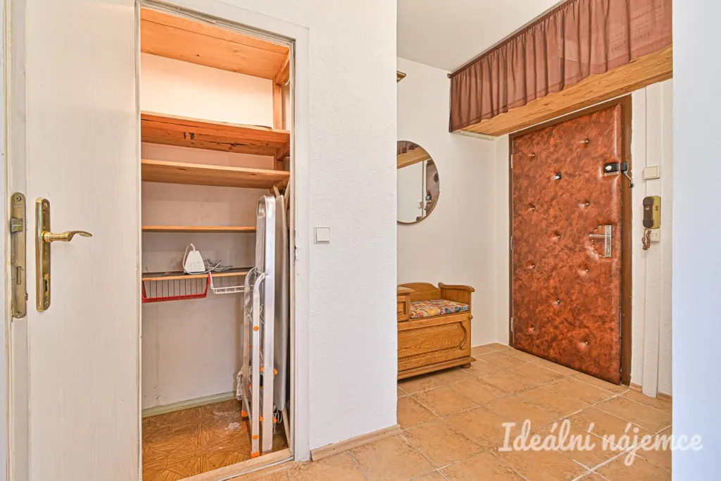 Byt se nabízí plně vybavený dle fotografií. Kuchyně je vybavena lednicí, myčkou, elektrickou troubou, varnou deskou, mikrovlnnou troubou a digestoří. Obývací část disponuje sedačkou a konferenčním stolkem. Ložnice je zařízena postelí a skříní. V koupelně najdeme vanu, umyvadlo, pračku a toaletu.