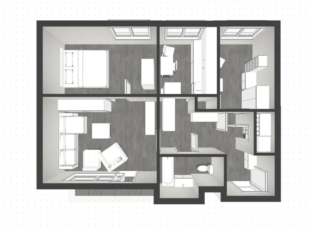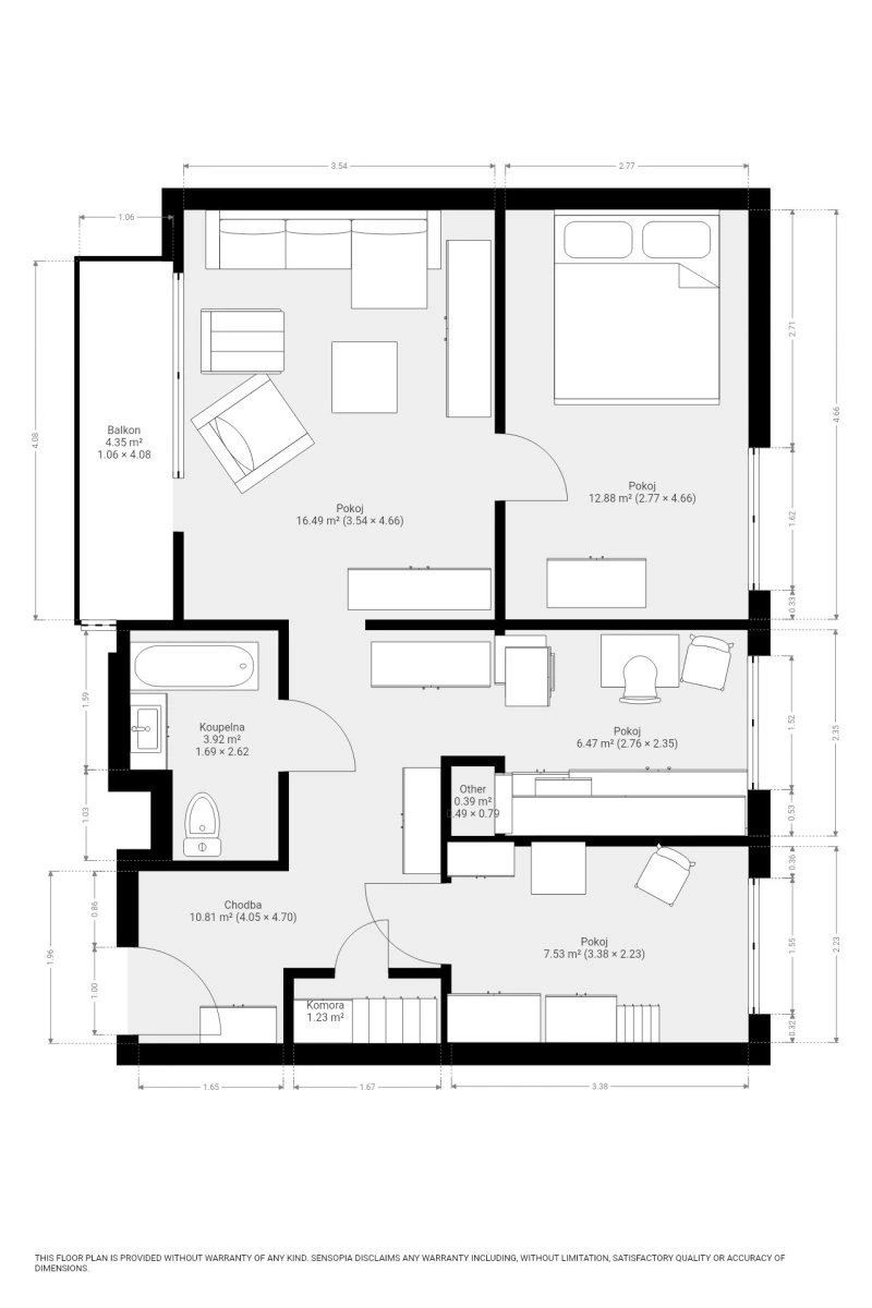 UPOZORNĚNÍ: Jeden pokoj je průchozí.