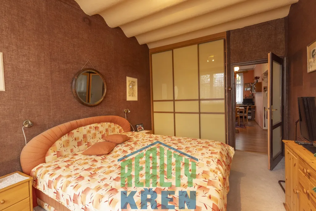 Vstupní hala s krbovými kamny 16 m2, obývací pokoj se sektorovým nábytkem 24 m2 a vstupem na lodžii 7,5 m2 , kuchyně s vybavenou kuchyňskou linkou 8,5 m2, 2x neprůchozí ložnice 19 m2, koupelna s vanou, samostatné WC, spíž, 2x šatna. K bytu náleží komora na patře a k užívání sklep 6m2 v suterénu domu. Byt i dům po rekonstrukci. Oplocená zahrada za domem ke společnému užívání, bezproblémové parkování. Veškerá občanská vybavenost v místě, výborná dopravní dotupnost.
