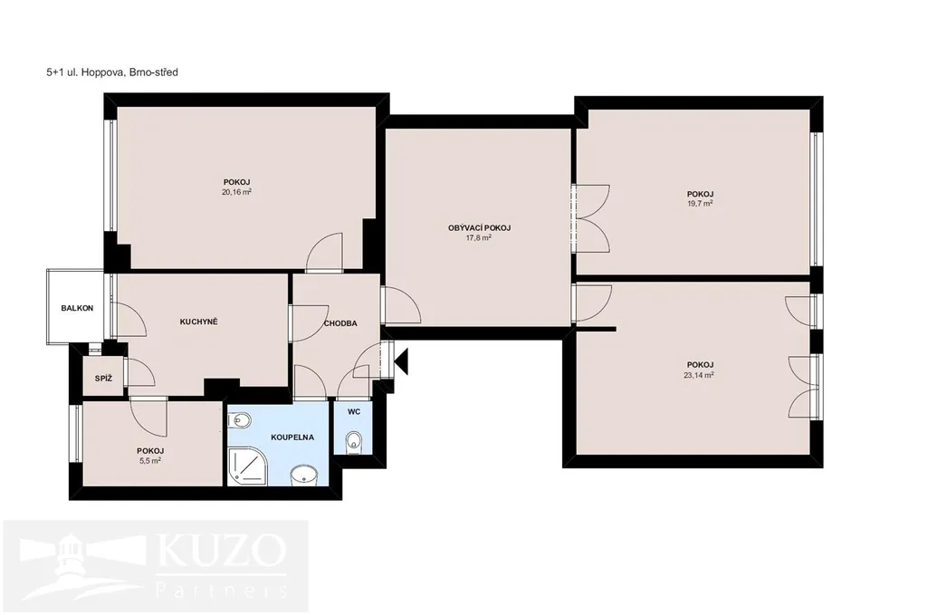 Pronájem vybaveného bytu 4+1, 103 m², Brno – Veveří, ul. Hoppova