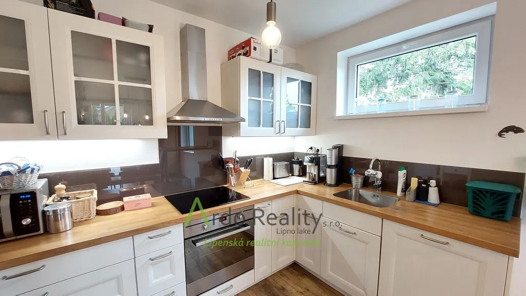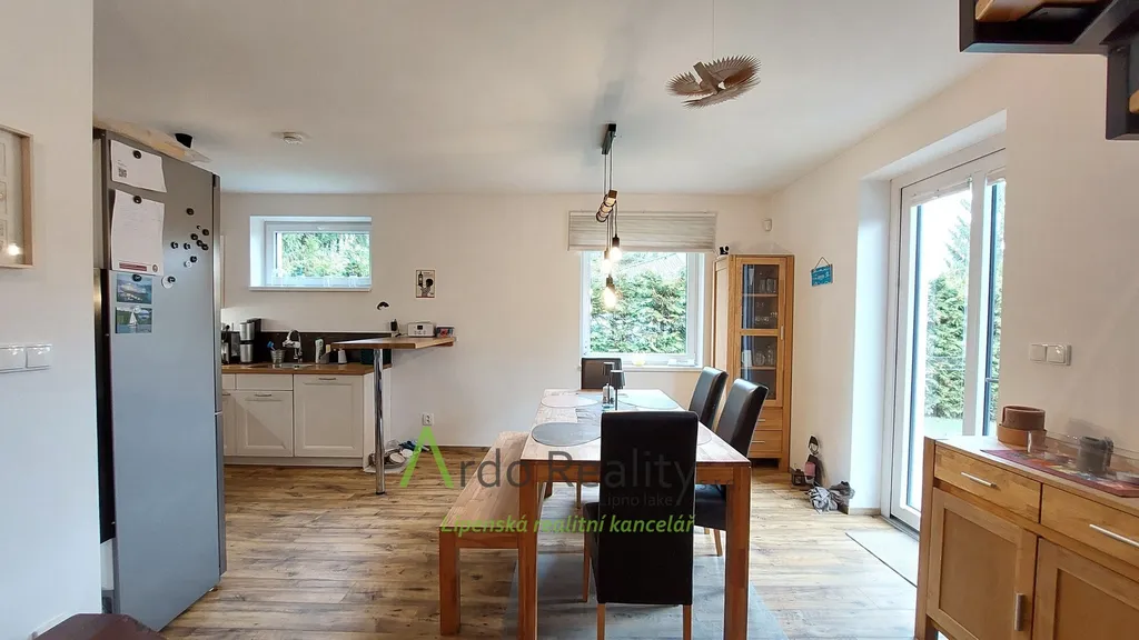 Nabízíme dlouhodobý pronájem velmi pěkného rodinného domu o užitné ploše 110 m² v Lipně nad Vltavou část Kobylnice. Dům se nachází ve velmi pěkném areálu, který byl realizován nedávno. Stavba byla dokončena v roce 2016, je vytápěna elektrokotlem, ale jsou k dispozici i krbová kamna v obývacím pokoji. V každém patře je koupelna. Z koupelny v přízemí vedou dveře do moderní sauny. Dům je elektronicky zabezpečen. Dominantou přízemí je velký obývací pokoj s jídelnou a kuchyňským koutem. V patře jsou tři ložnice (13,24, 12,26, 18,10 = 43,60 m²) , přičemž ložnice rodičů disponuje samostatnou místností, kterou můžeme nazvat šatnou. Když otevřete francouzská okna z obýváku, můžete vyjít na terasu, která má rozlohu 20 m². Na udržované zahradě byl zbudován zahradní domek pro úschovu zahradního nábytku a dalších potřeb. Od Lipenského jezera je dům vzdálen jen asi 120 metrů. Na druhé straně hlavní komunikace je komplex Amenity, kde je wellness, restaurace, bazén a skvěle vybavený fitness s výhledem na jezero. Lipno nad Vltavou poskytuje dále mnoho možností sportovního a dalšího vyžití. Je zde pěkný skiareál, parádní cyklostezka, mnoho restaurací a v neposlední řadě můžete zajet do malebného Frymburku, který byl vyhlášen lázeňským místem a brzy zde zajisté lázeňský dům vyroste.