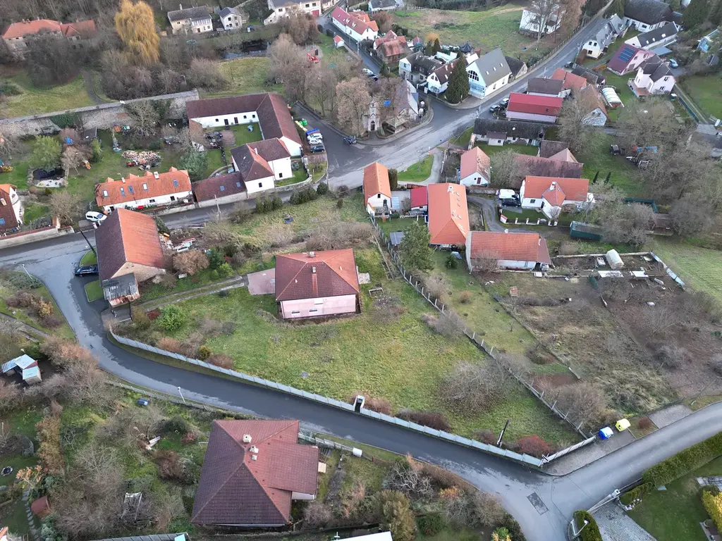 Dům se nachází v centru obce, kdy ze svažitého pozemku, jak jsem již popsal, je opravdu krásný výhled do širokého okolí. Spádovým centrem jsou 4km vzdálené Černošice.