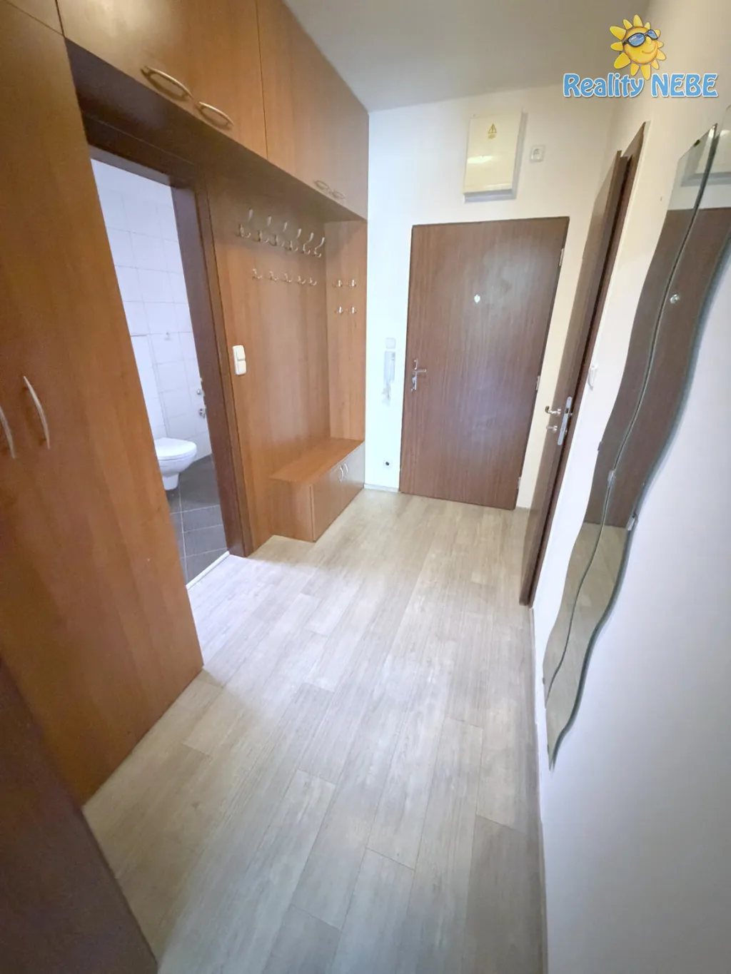 Nabízíme k dlouhodobému pronájmu byt 2+kk, 54 m2 s balkonem 4 m2 v 1. patře (2/6 NP) moderního bytového domu v lokalitě Praha 9 – Vysočany, ulice Pod Harfou. Byt je ve velmi dobrém stavu, skládá se z jedné samostatné ložnice (s vestavnou šatní skříní), průchozího obývacího pokoje s plně zařízeným kuchyňským koutem (linka se spotřebiči - el. trouba, varná deska, lednice s mrazákem, myčka nádobí, mikrovlnná trouba a barový pult), odkud je vstup na balkon, orientovaný na jižní stranu do klidné ulice. Koupelna je s vanou, WC a přípojkou na pračku), v chodbě vestavné šatní skříně a komora (cca 1x2m). K bytu náleží garážové stání v přízemí domu.
