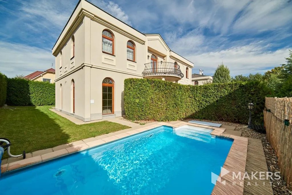 Elegantní samostatná vila je situována v uzavřeném a vysoce žádaném rezidenčním areálu v pražských Nebušicích. Dispozice domu nabízí obytnou plochu 243 m², dvojgaráž a terasu o velikosti 11 m². Součástí nemovitosti je také privátní zahrada s vyhřívaným bazénem o rozměrech 5 x 3,1 x 1,5 m.
