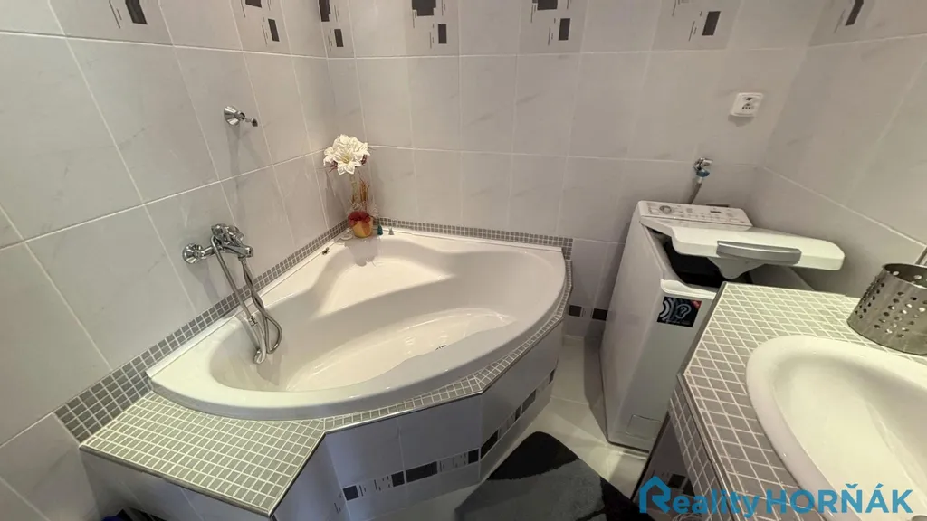 V bytě byly provedeny stavební a technické úpravy. Koupelna je vybavena rohovou vanou, umyvadlem a místem pro pračku. Záchod je vybaven závěsným klozetem (geberit). Podlahy v bytě tvoří kombinace dlažby, PVC a původních parket (kryté kobercem).