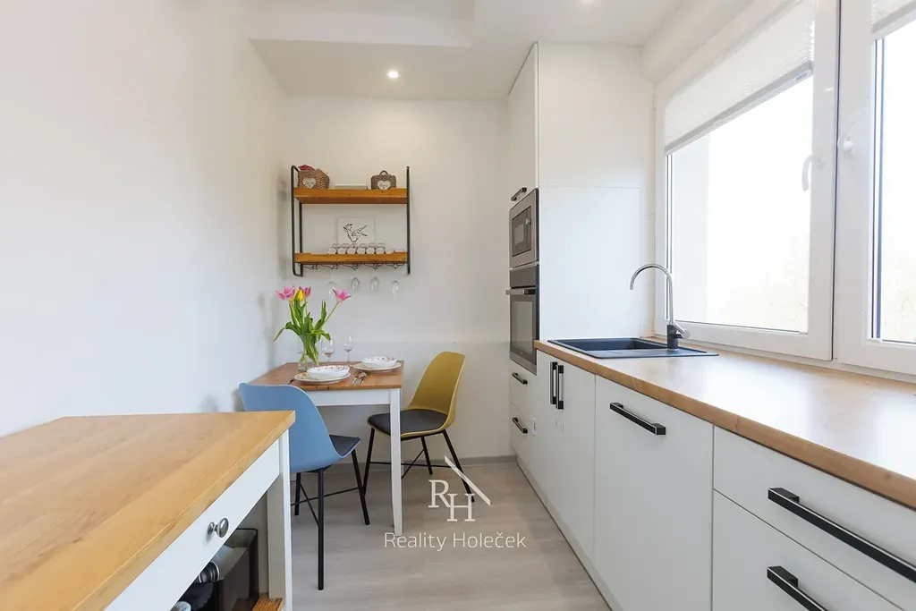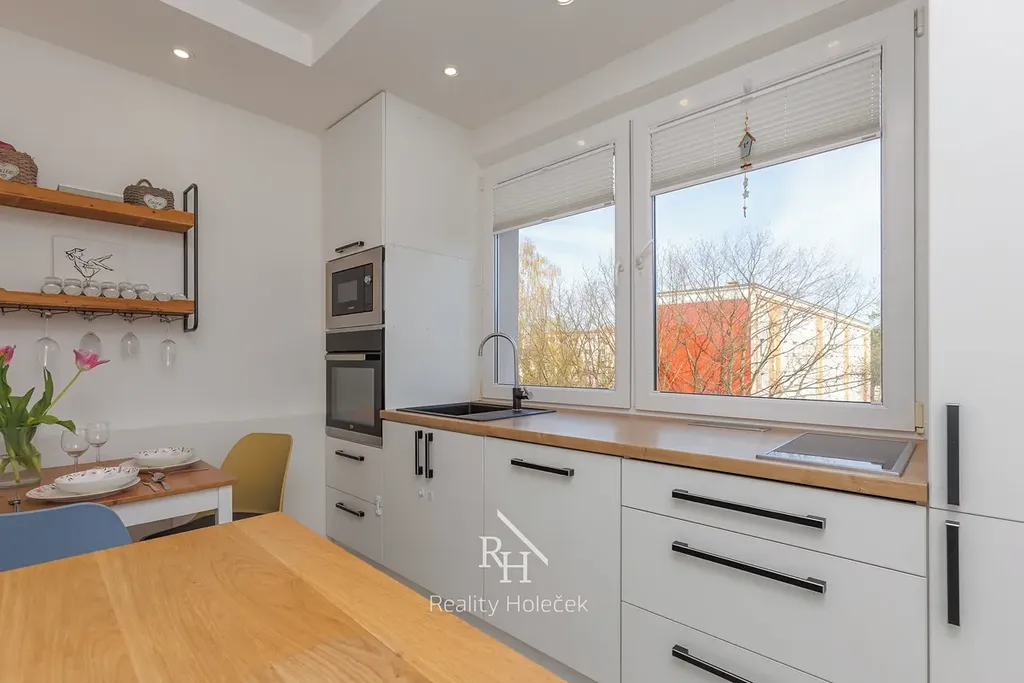Byt nabízí praktické rozložení místností, které vyhoví jednotlivcům, párům i menší rodině. Moderně řešená koupelna odpovídá současným standardům, kuchyň je vybavena linkou na míru včetně spotřebičů. Nad linkou je okno, ze kterého se můžete kochat výhledem při vaření. To se v panelovém domě jen tak nevidí. Díky promyšlené dispozici působí byt vzdušně a zároveň útulně. Nachází se ve 3. patře domu, který je zateplený, má nové výtahy a reprezentativní společné prostory – SVJ tu funguje tak, jak má.