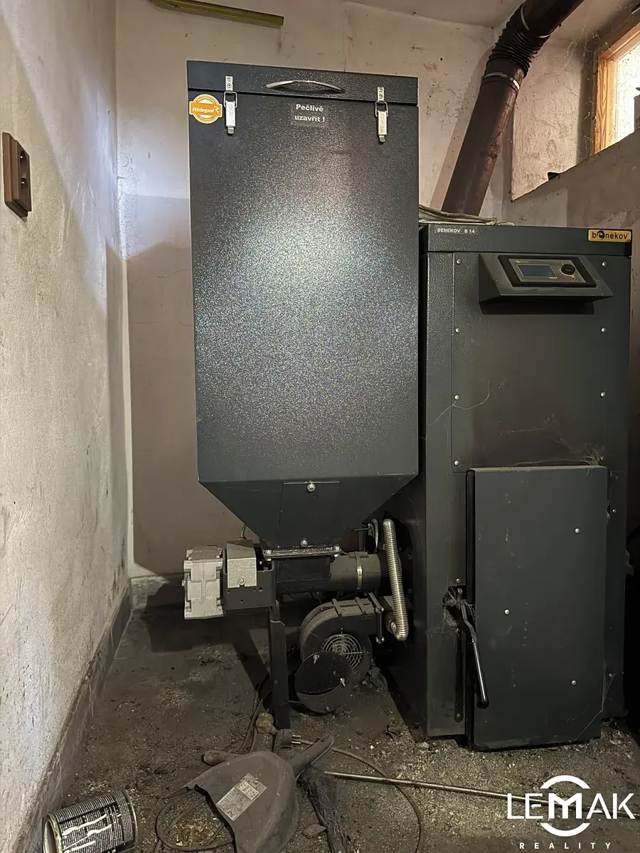 O vytápění se stará kotel na tuhá paliva, doplněný krbem s výměníkem, který nejen zpříjemní atmosféru interiéru, ale zároveň slouží jako efektivní alternativní zdroj tepla. Vytápěcí těleso radiátor + z části podlahové vytápění.