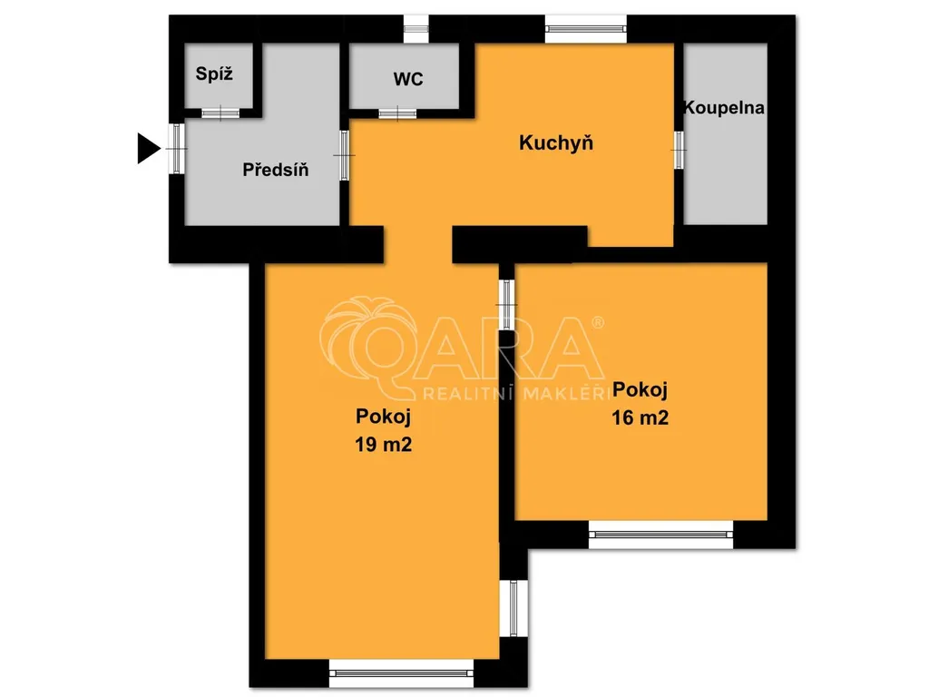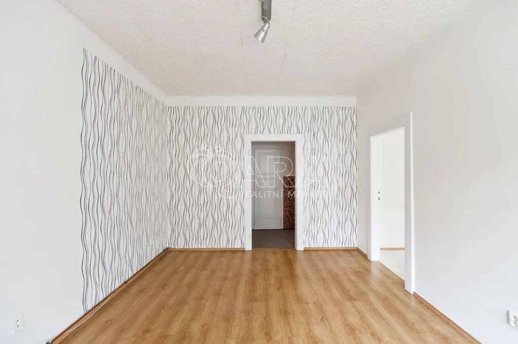 Dispozice: kuchyňský kout v chodbě, dva samostatné pokoje do ulice, koupelna s vanou, toaleta a komora