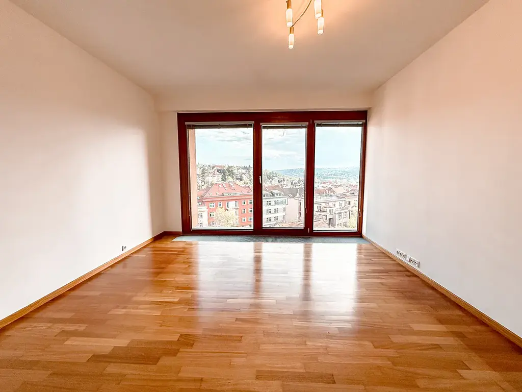 Dominantou bytu je prostorný obývací pokoj s velkoformátovými okny, které nabízejí krásný otevřený výhled na Prahu. Kuchyňský kout je plně vybavený. Samostatná ložnice poskytuje dostatek soukromí a součástí bytu je také praktická šatna / walk-in garderoba.