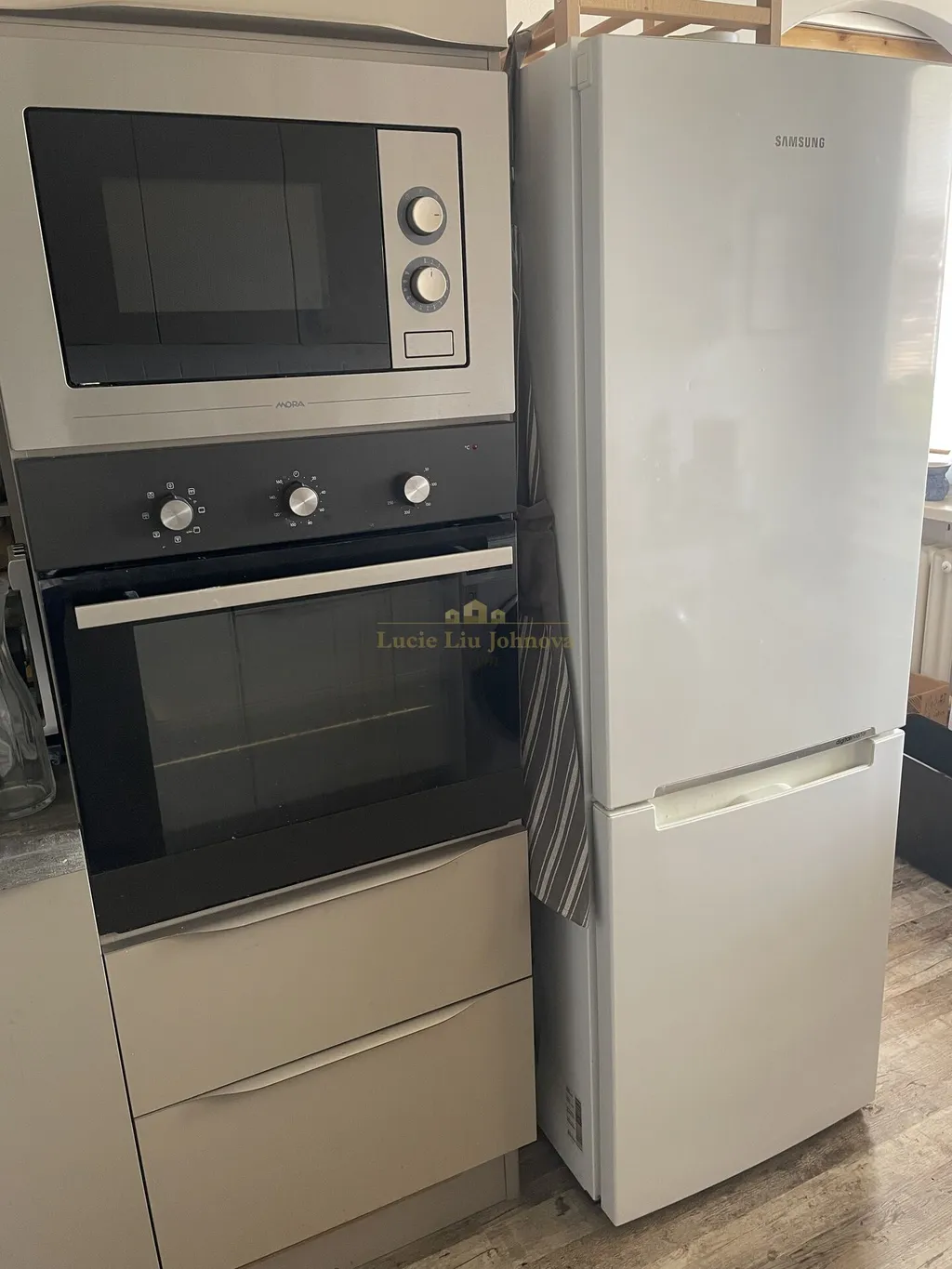 Vybavení bytu: v kuchyni je instalována několik let stará kuchyňská linka se spotřebiči: myčka nádobí, pračka, lednice, digestoř, elektrická trouba, mikrovlnná trouba.