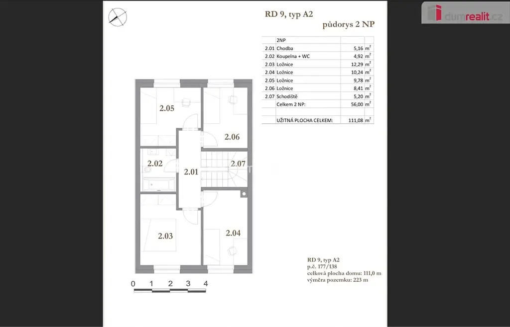 zastavěná plocha domu: 73 m²