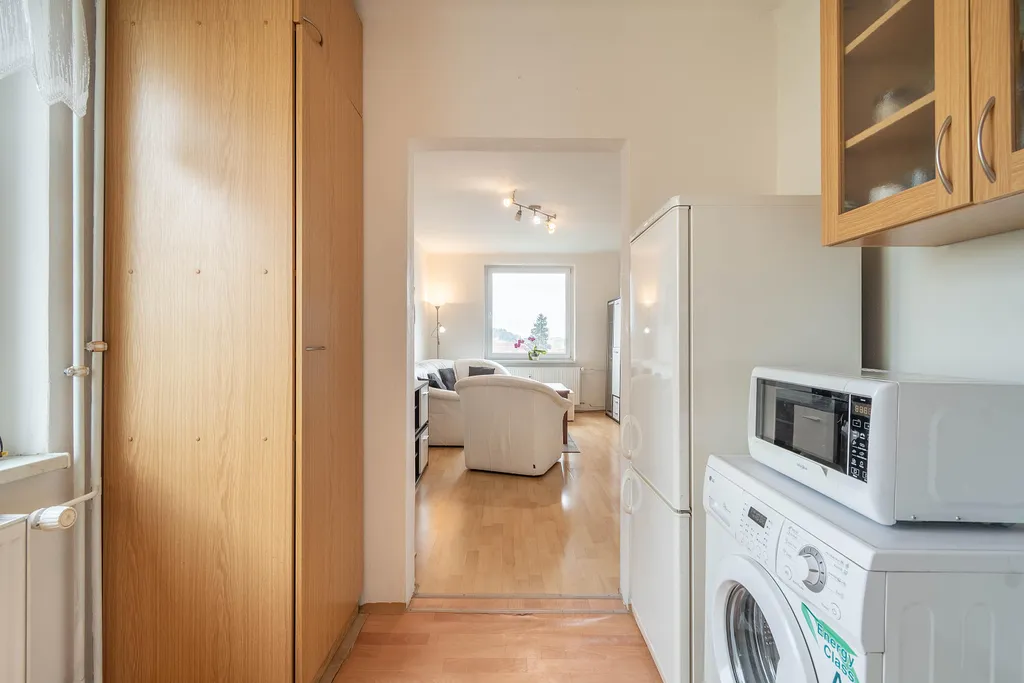 Nabízíme zprostředkování pronájmu velmi hezkého, světlého bytu o dispozicí 2+1 (50m²) s lodžií (2,4m²), umístěného v 5. patře revitalizovaného domu, s výhledem na Svatou Horu a Brdy.