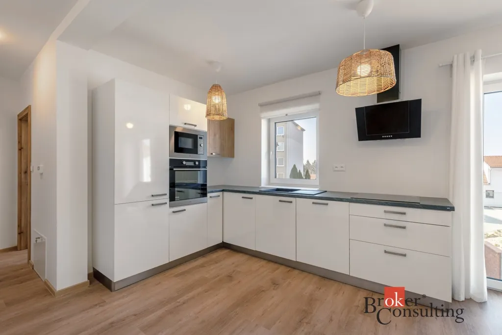 Byt zaujme promyšleným uspořádáním – obývací pokoj s na míru řešeným kuchyňským koutem tvoří příjemné centrum domova, na které navazují dva samostatné pokoje vhodné jako ložnice, dětský pokoj či pracovna. Nechybí koupelna, samostatné WC a dostatek denního světla.
