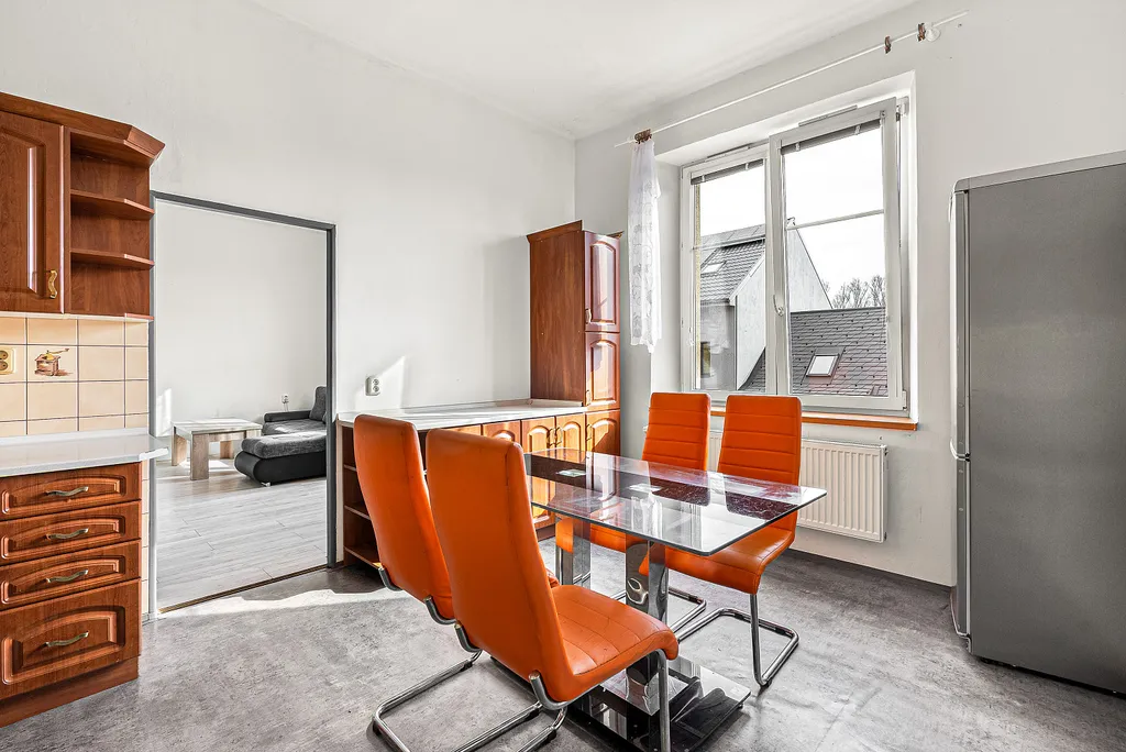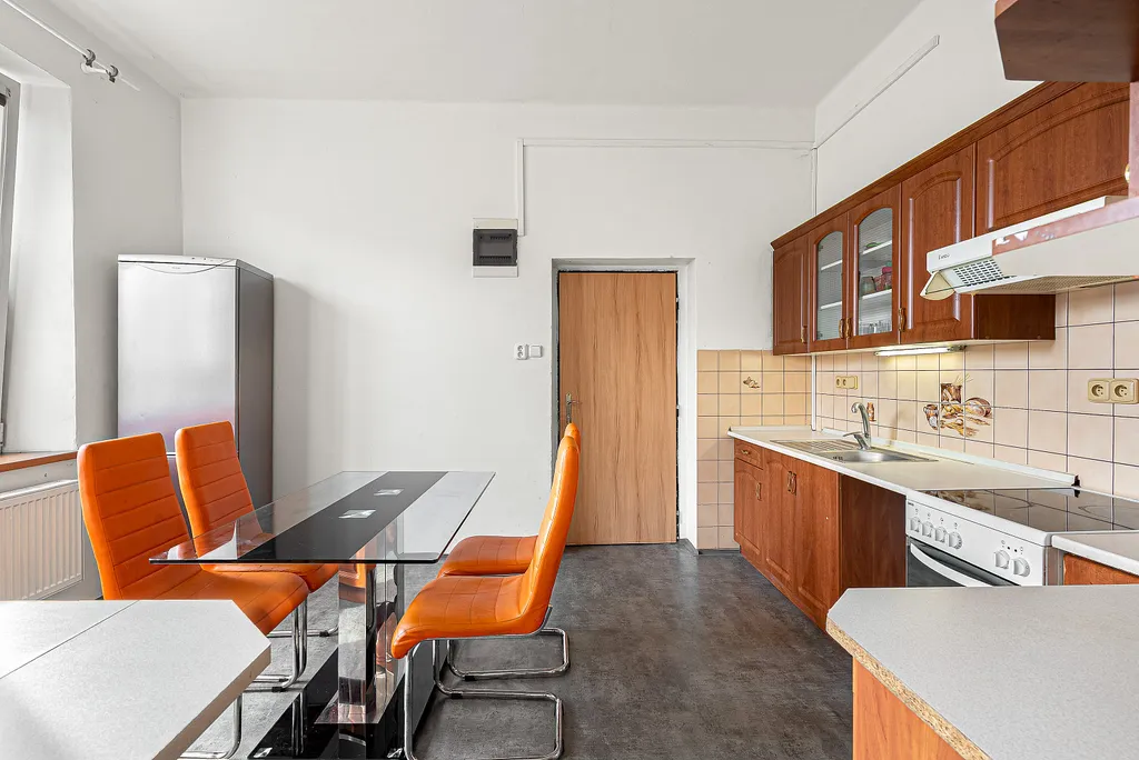 Ve druhém patře tohoto domu v původním stavu s osmi byty, najdete toto 3+1 s podlahovou plochou 66,4 m². K bytu oceníte pronajatou zahradu od města, kde můžete trávit svůj čas.