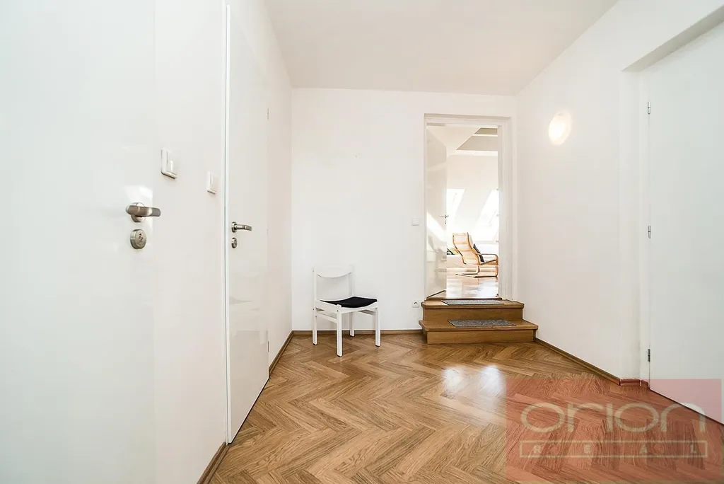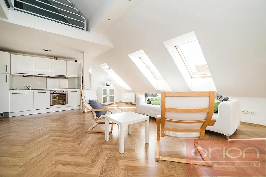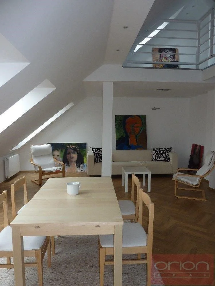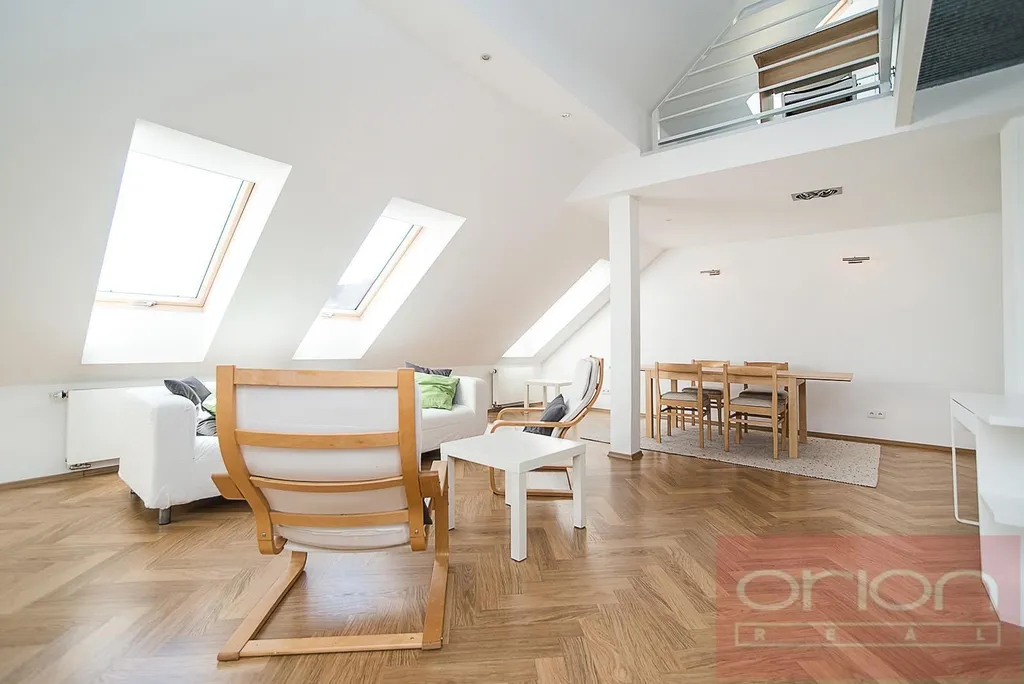 Nabízíme k pronájmu atypický, slunný byt o velikosti 100 m², situovaný v 5. patře zrekonstruovaného funkcionalistického domu ve vyhledávané lokalitě Praha 6 - Bubeneč, s nádherným výhledem na Pražský hrad. Částečně zařízený byt je přístupný výtahem přímo do bytu a je orientován na severovýchod a jihozápad, což zajišťuje dostatek světla po celý den. Dispozice bytu je rozdělena do dvou částí: První část nabízí dvě vstupní haly, prostornou ložnici s balkonem a krásným výhledem, koupelnu a samostatnou toaletu. Druhá část zahrnuje velký obývací pokoj s jídelní částí (cca 30 m²), plně vybavený kuchyňský kout, další koupelnu s toaletou a komoru, kterou lze využít jako pracovnu. V horním patře se nachází galerie o velikosti 20 m², ideální jako druhá ložnice nebo pracovní prostor. K vybavení bytu patří klimatizace a elektrický bojler pro ohřev vody, na podlahách jsou dřevěné parkety a dlažba. Dům se nachází jen pár kroků od stanice metra A, v blízkosti Pražského hradu a rozlehlého parku Stromovka. Lokalita nabízí výbornou dopravní dostupnost jak MHD, tak autem, a zároveň kompletní občanskou vybavenost v docházkové vzdálenosti. Možnost parkování ve vnitrobloku za příplatek. Byt je ideální pro klienty, kteří hledají netradičně řešený prostor v prestižní lokalitě s rychlou dostupností do centra i na letiště, a zároveň ocení blízkost vyhlášených kaváren, bister a restaurací.