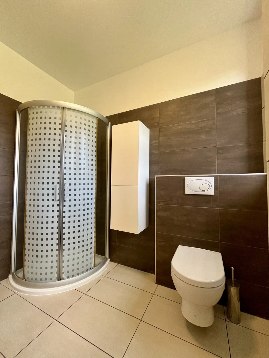 Interiér je částečně vybavený a připravený k okamžitému nastěhování. Moderní kuchyňská linka je osazena vestavěnými spotřebiči – elektrickou troubou, sklokeramickou varnou deskou s digestoří, lednicí, myčkou i mikrovlnnou troubou. Byt disponuje dvěma neprůchozími pokoji, což zajišťuje dostatek soukromí i komfortu. Součástí bytu je také prostorná koupelna se sprchovým koutem, která nabízí dostatek místa pro pohodlné každodenní fungování.