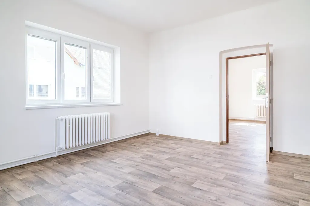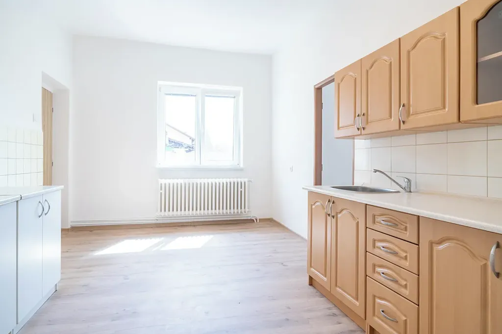 Dispozice domu zahrnuje čtyři samostatné pokoje a oddělenou kuchyni, což zajišťuje dostatek soukromí i variability využití prostoru. Výhodou jsou také tři menší uzavíratelné místnosti, které nabízejí praktické využití – jedna slouží jako šatna, druhá se nachází u kuchyně a je ideální jako spíž, třetí lze využít jako úložný prostor či kumbál. K domu náleží také sklep. Součástí je také venkovní pozemek o velikosti 54 m², přičemž v zadní části pozemku se nachází praktický výklenek, který je ideální pro vybudování příjemného venkovního posezení. Parkování je možné přímo vedle domu.