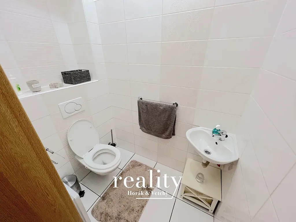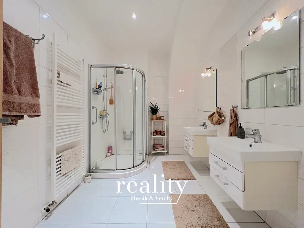 Samostatná ložnice s vlastní šatnou nabízí dostatek úložného prostoru a soukromí. Koupelna je vybavena sprchovým koutem a dvěma umyvadly, což zvyšuje komfort při každodenním užívání. Dále je k dispozici samostatná toaleta, komora a předsíň, která vhodně odděluje jednotlivé části bytu.