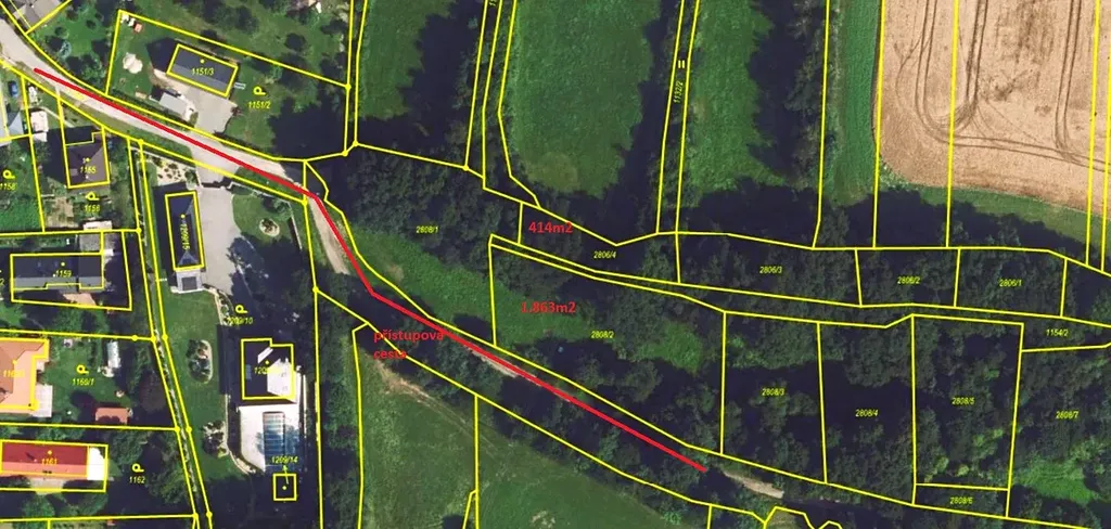 Přístup na parcelu je bezproblémový autem ze silnice pod správou Ol. kraje přes obecní pozemky.