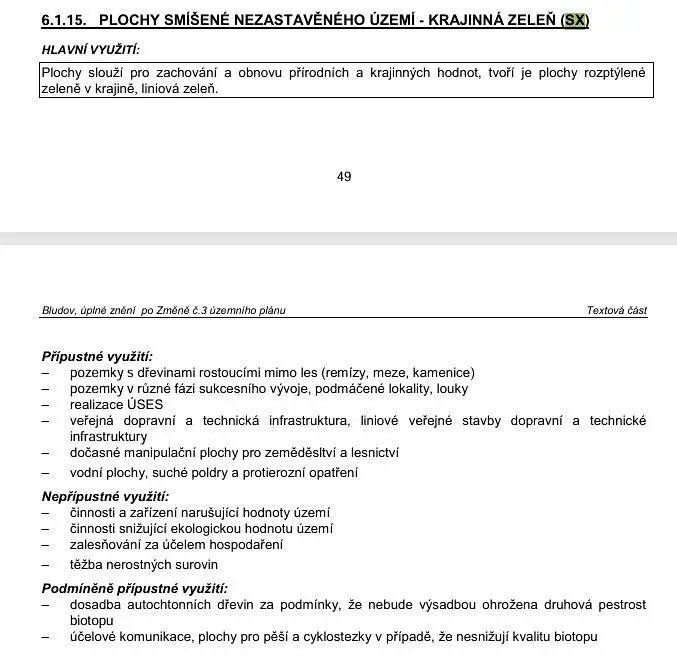 Pozemky je v platném územním plánu obce označen SX – krajinná zeleň