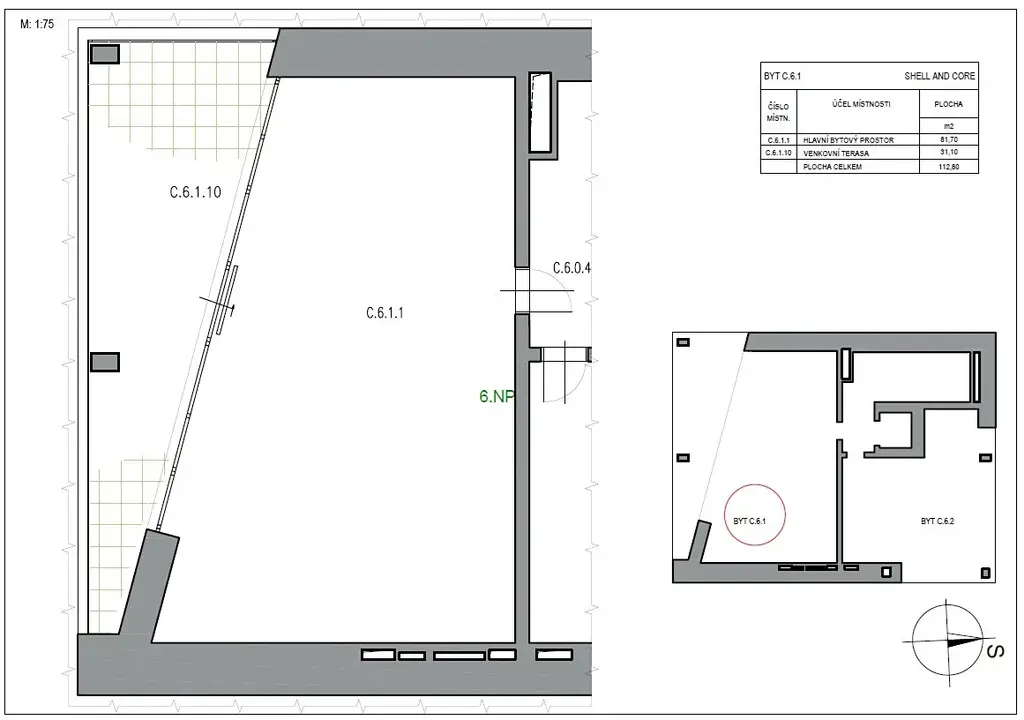 Bytová jednotka č. 3791/128 o dispozici 2+kk a podlahové ploše 81,7 m2, situovanou v 5. nadzemním podlaží moderního bytového domu na ulici Lorencova v centru Zlína.