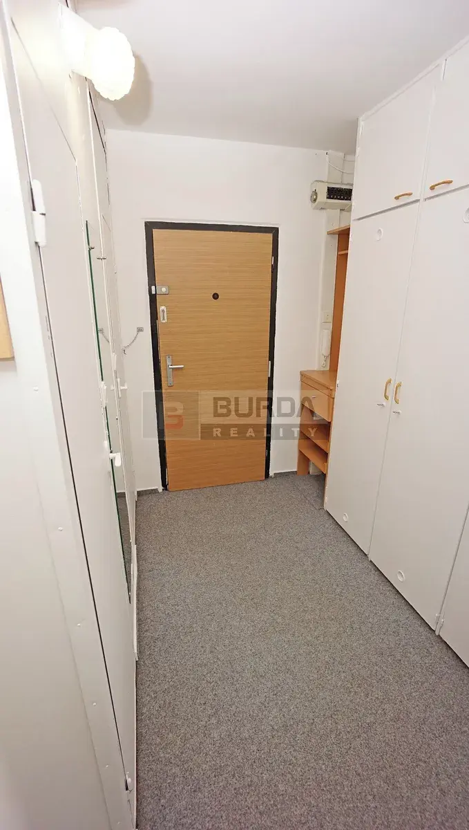V bytě pro podnájemníka zůstane kuch. linka se sporákem, rozkládací jídelní stůl se 2 židlemi, křeslo, konferenční stolek, obývací stěna, v ložnici šatní skříň a policová skříňka, v chodbě vestavěné natřené skříně, věšáková stěna a botník.