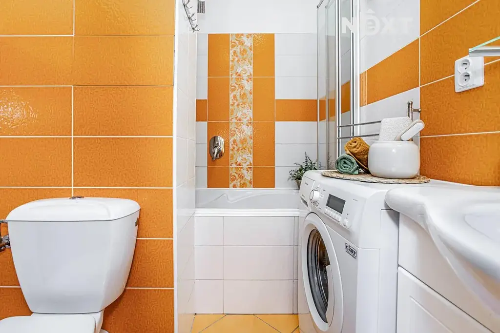 Z chodby vstupujeme do koupelny o velikosti 3,7 m², která je prakticky řešená – najdete zde vanu, prostor pro pračku i vše potřebné pro každodenní fungování. Toaleta je součástí koupelny.
