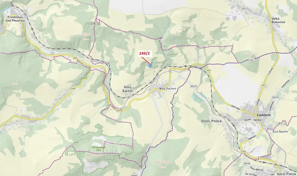Lesní pozemek o výměře 4192 m2, parcelní číslo 249/2, podíl 1/1, katastrální území Starý Šachov, obec Starý Šachov, obec s rozšířenou působností Děčín, okres Děčín, Ústecký kraj.