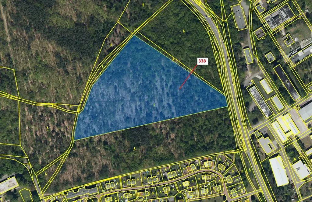 Lesní pozemek o výměře 37 060 m2, parcelní číslo 338, podíl 1/1, katastrální území Rybitví, obec Rybitví, obec s rozšířenou působností Pardubice, okres Pardubice, Pardubický kraj. Částečně po těžbě.