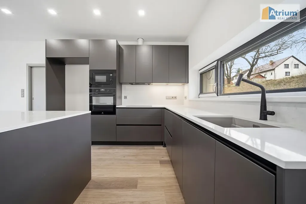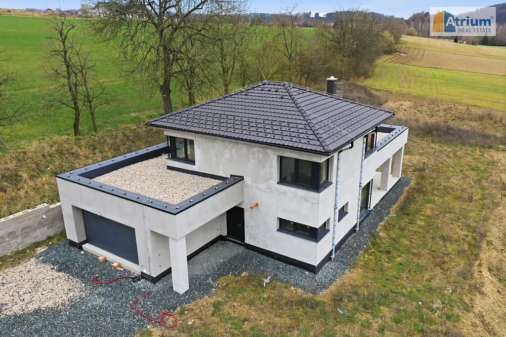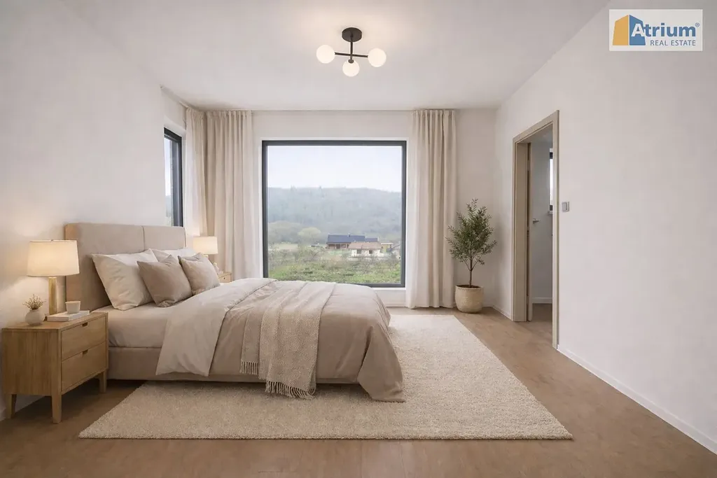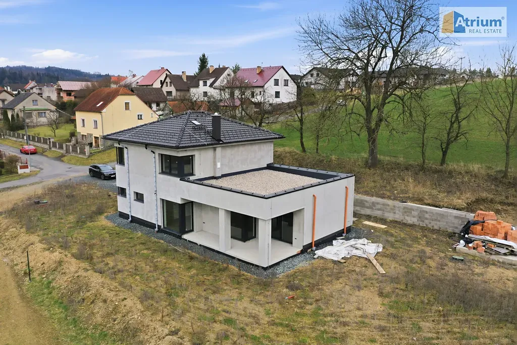 Luxusní dům, který byl postaven v roce 2025, nabízí celkovou užitnou plochu 194 m², zahrnující v přízemí prostorný obývací pokoj spojený s kuchyní /zn. SYKORA, deska je z tvrzeného kamene Technistone/, dále zde naleznete rodičovské apartmá /ložnice+šatna+koupelna s WC/, dále úložné prostory a technicklé zázemí domu. V prvním patře jsou umístěny 2 ložnice s dostatkem prostoru pro děti, pracovna, společná šatna a samozřejmě koupelna s WC. Dvě patra domu poskytují dostatek soukromí pro každého člena rodiny. Obrovskou výhodou tohoto RD je krásná terasa s výhledem do okolí, kde budete mít možnost trávit pohodové chvilky s rodinou či přáteli třeba u grilpovačky. Nesmíme ale zapomenout ještě na velkoryse navrženou garáž, která pojme pohodlně 2 auta a ještě zbyde dostatek místa pro uskladnění věcí či prostor pro kutila.