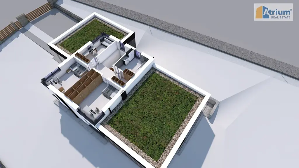 Poslední, ale důležitou informací je, že se vlastník rozhodl nedokončovat finální fasádu a exrteriéry. Chce umožnit budoucím vlastníkům, aby se sami rozhodli, jaký odstín fasády bude jejich nový dům mít a jak bude vypadat zahrada. Tuto skutečnost zohledňuje majitel tím, že sousedící pozemek č. 2173/6, kde vlastní podíl ve výši 424/1379, bude součástí kupní ceny jako bonus.