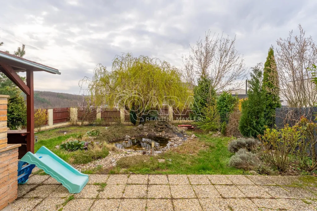 Z místnosti je přímý vstup na terasu, která plynule přechází v příjemný venkovní prostor s altánkem k posezení a zděným grilem, ideálním pro rodinné večeře i letní setkávání s přáteli. Celý tento kout je zasazen do pečlivě udržované zahrady s okrasným jezírkem a záhony, které dotvářejí klidnou a harmonickou atmosféru. U altánku se navíc nachází plně vybavený letní domek, který výrazně rozšiřuje možnosti využití zahrady. Nabízí kuchyňskou linku, toaletu i sprchový kout, a vytváří tak plnohodnotné zázemí bez nutnosti návratu do domu.