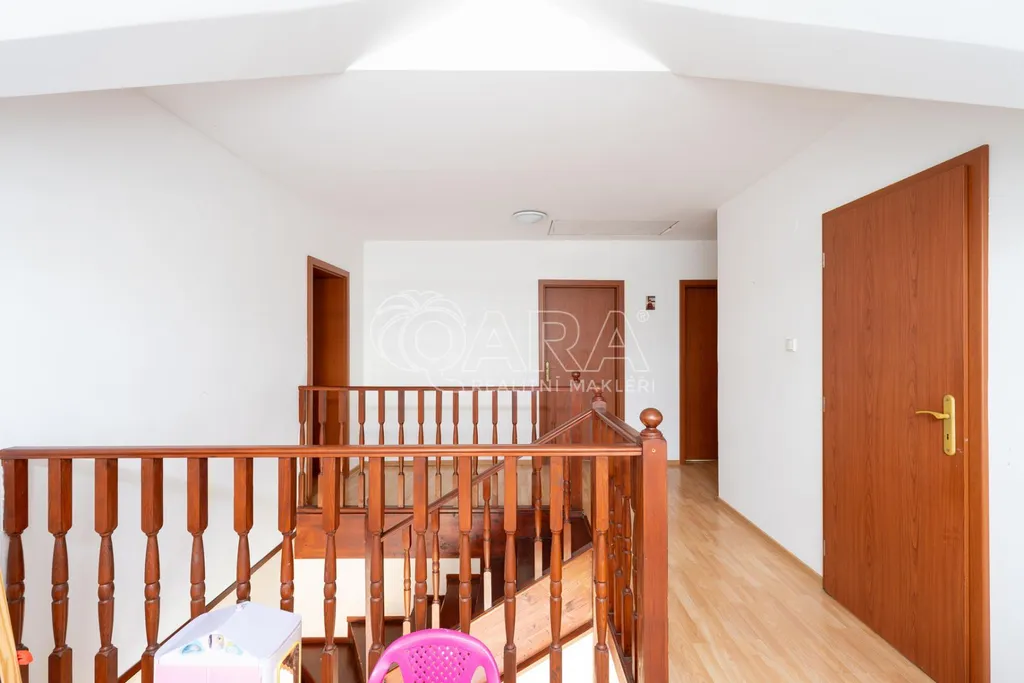 Z chodby se po dřevěných schodech dostaneme do 2. nadzemního podlaží. K dispozici jsou tři vzájemně neprůchozí ložnice, první ložnice má výměru 13,7 metrů čtverečních. Druhá ložnice má výměru 13,5 metrů čtverečních a poslední, hlavní ložnice má výměru 21,7 metrů čtverečních. Z hlavní ložnice je vstup i na balkon. K dispozici je také druhá koupelna s rohovou vanou, umyvadlem a WC.