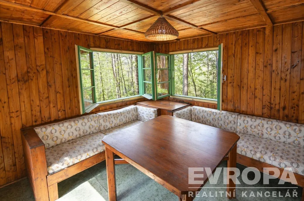 Chata se nachází na lesním pozemku v mírném svahu, obklopená přírodou, s dostatkem soukromí a krásnými výhledy do okolní krajiny. Řeka Berounka je v údolí cca 7min. pěšky. Jedná se o ideální místo pro odpočinek, víkendové pobyty i únik z města.