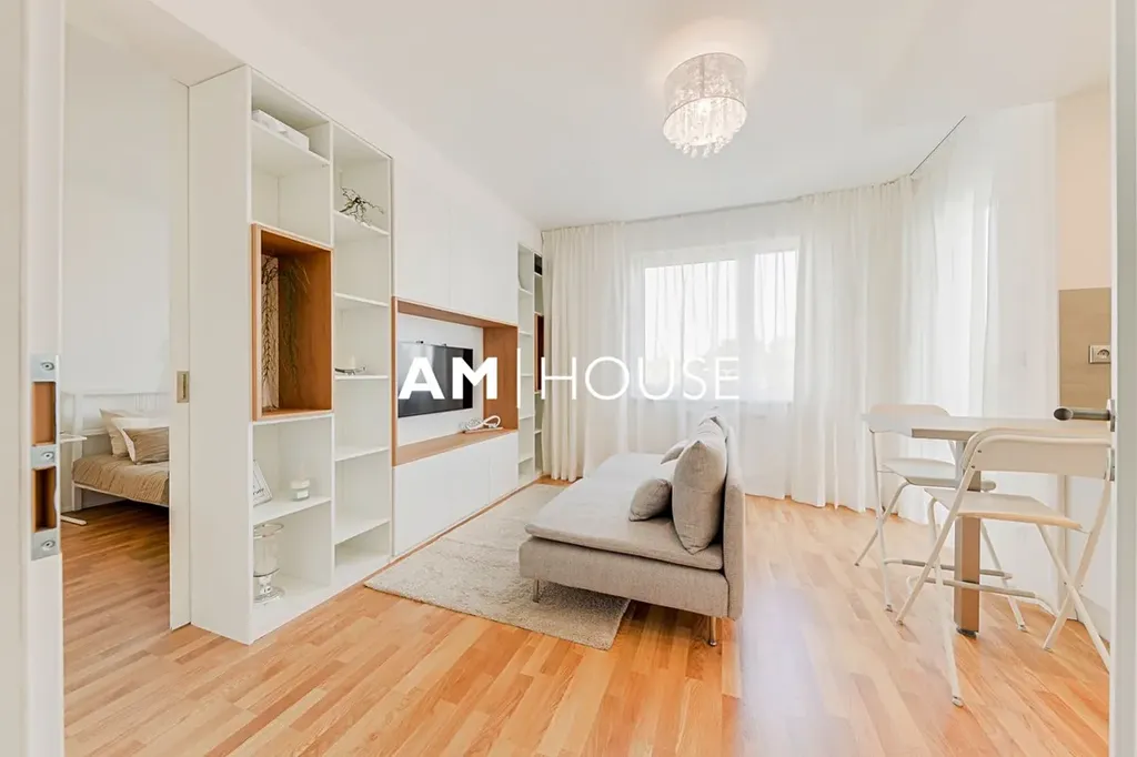 Kompletně zařízený a stylový byt se nachází v 3. nadzemním podlaží novostavby. Byt je kompletně zařízený včetně kuchyňského koutu a spotřebiče.